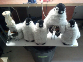 Kahe suurema pingviini mootorid ja reduktorid olid aja jooksul põlenud ja kulunud. Siiski õnnestus leida sobivad asendusvaruosad ja pingviinid uuesti liikuma saada. Istallatsiooni omanik Tallinna Kaubamaja ( www.kaubamaja.ee ). Pingviinikesi saab näha mõnel Kaubamaja vaateaknal.