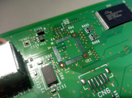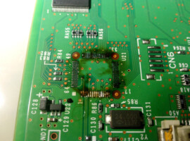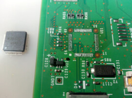 • При визуальном осмотре платы под микроскопом не было замечено никаких видимых причин и под подозрение сразу попал 64-ногий периферийный чип-контроллер в который прямиком и «заходит» усб гнездо, после нескольких дней ожидания пришел новенький чип для замены.